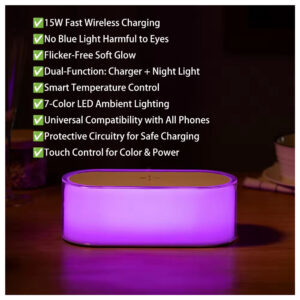 15W Fast Wireless Charger with LED Indicator and Touch Control
