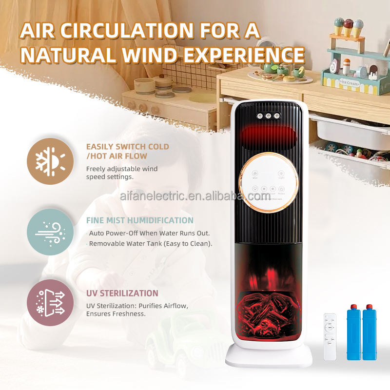 Combining mist cooling, adjustable speeds, and convenient remote control, this fan provides an efficient and refreshing solution for everyday summer comfort.