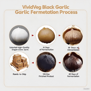 Naturally fermented 100% black garlic cloves, sweet and tender, vacuum-sealed for freshness—perfect for eating, cooking, or food preparation.