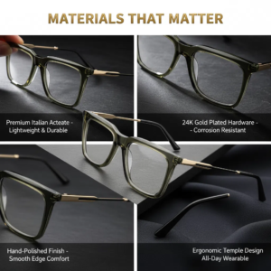 Crafted from high-quality acetate material, the frame is lightweight, flexible, and highly durable, ensuring long-term daily wear without discomfort. The smooth finish and skin-friendly texture provide a comfortable fit, even during extended use, making it ideal for office work, reading, driving, and screen time.