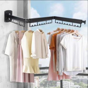 This foldable and expandable wall mounted laundry drying rack is designed to maximize space efficiency in balconies and indoor areas. Made from durable carbon steel, it offers strong support for clothes and towels while ensuring long-lasting use. The rack features a smooth glossy or brushed finish with multiple color options to match different home interiors. Its wall-mounted, foldable design allows easy expansion when in use and compact storage when not needed. Suitable for bathrooms, kitchens, living rooms, and balconies, it provides a practical and modern drying solution.