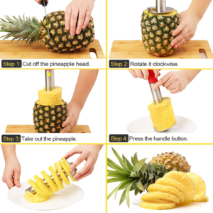 Made from high-quality stainless steel, the corer is durable, rust-resistant, and easy to clean. Its ergonomic handle ensures a comfortable grip and safe operation. The sharp, spiral design allows you to core and slice pineapples with minimal effort.