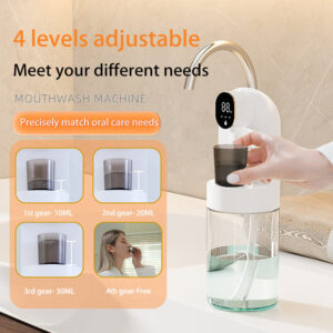 Upgrade your bathroom hygiene with this automatic sensor mouthwash dispenser featuring a 600ML capacity and dual cups. Designed for touchless operation, it ensures clean and controlled dispensing every time. The wall-mounted design saves space while maintaining a modern look. Ideal for households, it promotes better oral hygiene with convenience and efficiency, making daily routines smarter, cleaner, and more organized for families and individuals.