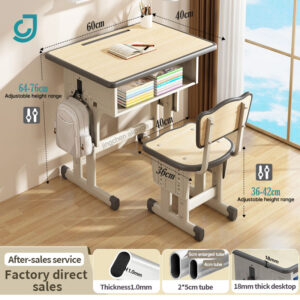 Jingchen Adjustable Kids Study Desk & Chair – School Classroom Table for Children