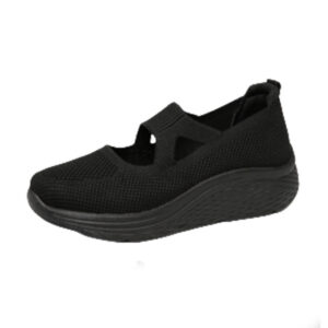 These ladies’ casual slip-on walking shoes are designed for all-season comfort and easy daily use. The stretch fabric upper with elastic band closure ensures a snug yet flexible fit, while the cotton fabric lining adds breathability. Lightweight EVA midsole and outsole provide cushioning with reliable anti-slip support. A round toe and geometric pattern give the shoes a modern, fashionable look suitable for everyday wear.