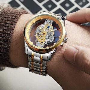 Tags: Gold Skeleton Design watch, Luxury Wristwatch, Men’s Quartz Wristwatch