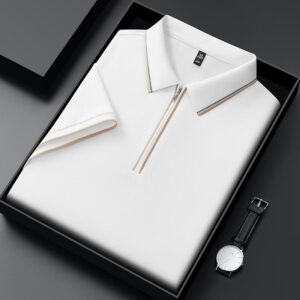 Tags: Men Casual Lapel Top, Men Luxury Polo Shirt, Silk Half Sleeve Polo