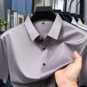 Featuring a classic turn-down lapel collar and a refined single-button front, this shirt strikes the perfect balance between relaxed style and sophisticated design. The non-ironing, wrinkle-resistant property ensures a consistently neat and polished look with minimal maintenance, ideal for busy daily lifestyles or travel. Designed for adult men who value comfort without compromising style, this silk shirt is suitable for everyday wear, casual outings, office environments, and upscale summer occasions.