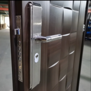 A durable modern steel security door with multi-pin locking system and customizable design. Ideal for residential and commercial exterior or interior applications.