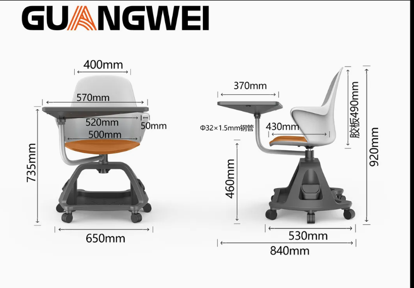 Combining comfort, mobility, and practicality, this student swivel chair with writing pad is a reliable seating solution for modern learning and working spaces.