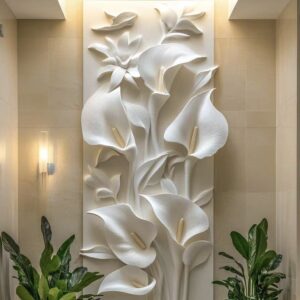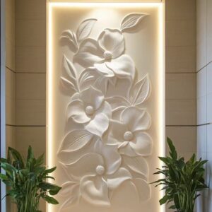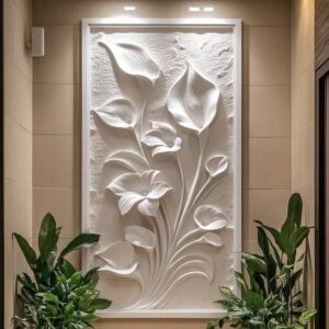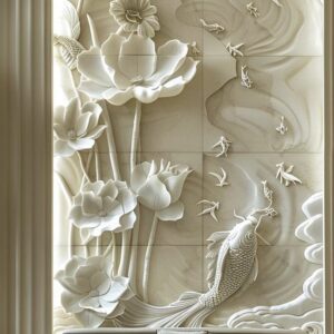 Add a touch of elegance with this customizable 3D wall relief. Made from eco-friendly fiberglass and natural marble, it brings contemporary artistry to any indoor space.