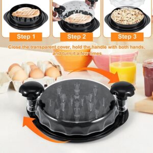 Prepare shredded chicken quickly and effortlessly with the Upgraded Round Manual Chicken Meat Shredder with Clear Lid. Designed for convenience and efficiency, this kitchen tool allows you to shred cooked chicken, turkey, or other meats in seconds with a simple twisting motion.