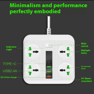 Featuring multiple sockets and integrated USB ports, this power strip reduces clutter and eliminates the need for separate chargers. The sturdy, fire-resistant housing and individual switch (depending on model) ensure safe and reliable operation. Perfect for homes, offices, and workshops, it combines functionality, convenience, and safety in one premium electrical accessory.
