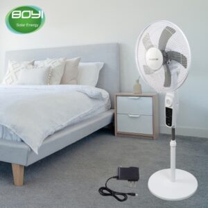 This 16-inch solar powered AC/DC rechargeable fan delivers powerful yet energy-efficient cooling for homes and indoor spaces. Designed to operate on solar energy or AC electricity, it ensures continuous airflow even during power outages. The fan is equipped with a built-in 5000mAh rechargeable lithium battery, providing reliable backup and long-lasting performance.