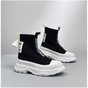 The 2025 Women’s High-Top Sock Sneakers combine style, comfort, and practicality for all-season wear. Crafted with a stretchy fabric upper and soft cotton lining, these shoes provide a snug, sock-like fit that adapts to your foot shape. The durable rubber midsole and outsole ensure excellent grip and stability, making them ideal for outdoor activities or casual everyday wear. With a round-toe design and lightweight construction, they are comfortable for long hours of walking or standing. Fashion-forward and versatile, these high-top sneakers offer a height-increasing effect while keeping feet breathable and stylish. Perfect for summer, spring, autumn, or winter, they effortlessly complement any casual outfit.