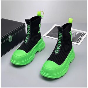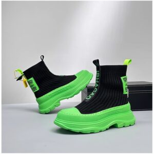 Trendy high-top sock sneakers with stretch fabric upper and cushioned rubber sole. Lightweight, breathable, and height-increasing, ideal for casual all-season wear.