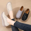 These autumn-ready slip-on shoes are crafted with a blend of genuine leather and PU for a stylish yet durable finish. The breathable mesh lining enhances comfort during extended walking, while the thick rubber sole provides stable support and cushioning. Designed with a round toe and easy slip-on style, they offer a relaxed fit ideal for daily wear and larger sizes. A fashion-forward look that balances comfort and trend effortlessly.