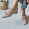 Lightweight square-toe sandals with elegant crystal detailing. Durable rubber sole and easy slip-on style for daily comfort. Perfect for casual, warm-weather wear.